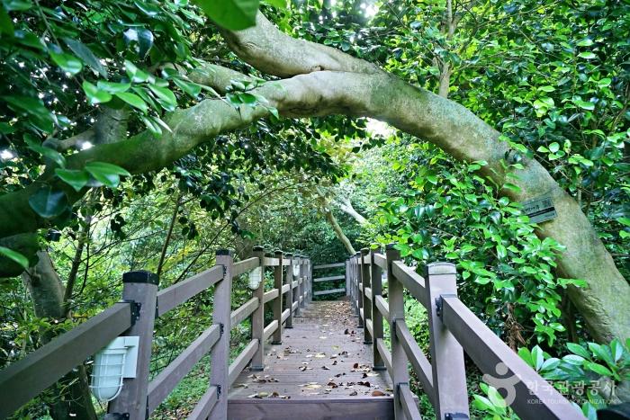 약 3ha 면적에 동백나무, 후박나무, 보리밥나무, 먼나무, 돈나무 같은 상록활엽수와 팽나무, 찰피나무, 푸조나무, 자귀나무, 때죽나무 등 낙엽활엽수가 어우러집니다.