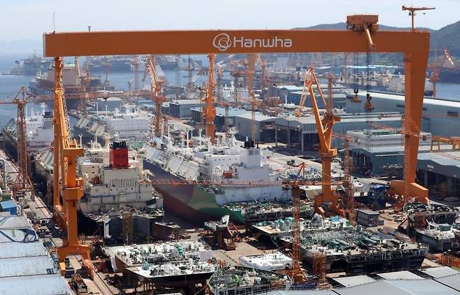 거제 한화오션 옥포조선소 야드전경 (사진출처: 한화오션)▲